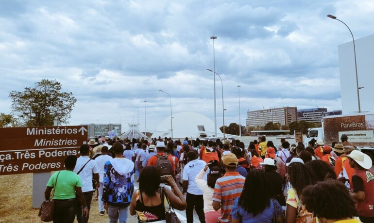Últimas notícias Participantes do Encontro Nacional interrompem atividades e marcham contra o Marco Temporal