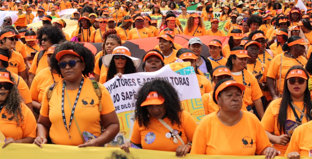 Guardiãs do território e da biodiversidade, elas foram à Brasília para reivindicar direitos, denunciar desigualdades e celebrar a força coletiva da ancestralidade negra, organizadas pela Coordenação Nacional de Articulação das Comunidades Negras Rurais Quilombolas (CONAQ), que ecoaram uma pauta urgente e estruturante: a reparação histórica e a garantia de uma vida plena.