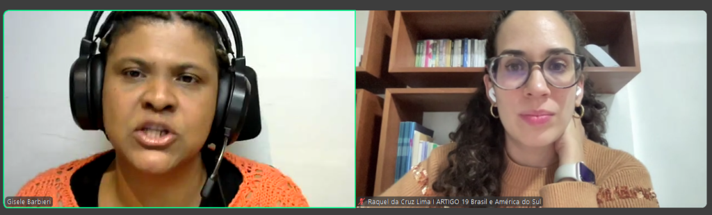 A roda contou com a participação de Gisele Barbieri, coordenadora de Incidência Política, da Terra de Direitos; e Raquel da Cruz Lima, coordenadora do centro de referência legal, da Artigo 19 Brasil e América Latina. Elas apresentaram uma síntese do histórico da trajetória de construção até a tramitação e incidências do Acordo de Escazú.